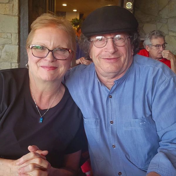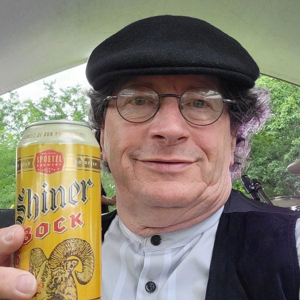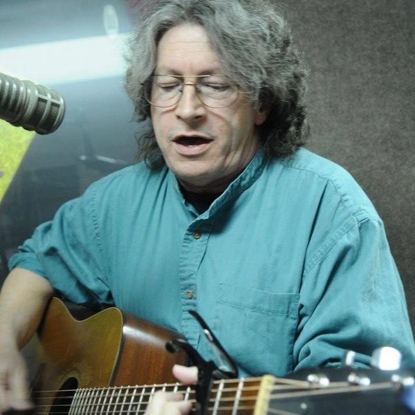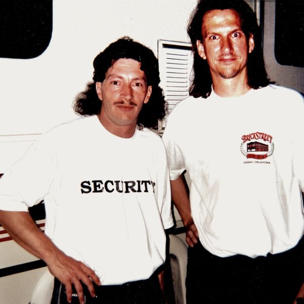 Dave with Ellis Paul at the inaugural Woody Guthrie Folk Festival, Okemah, OK 1998